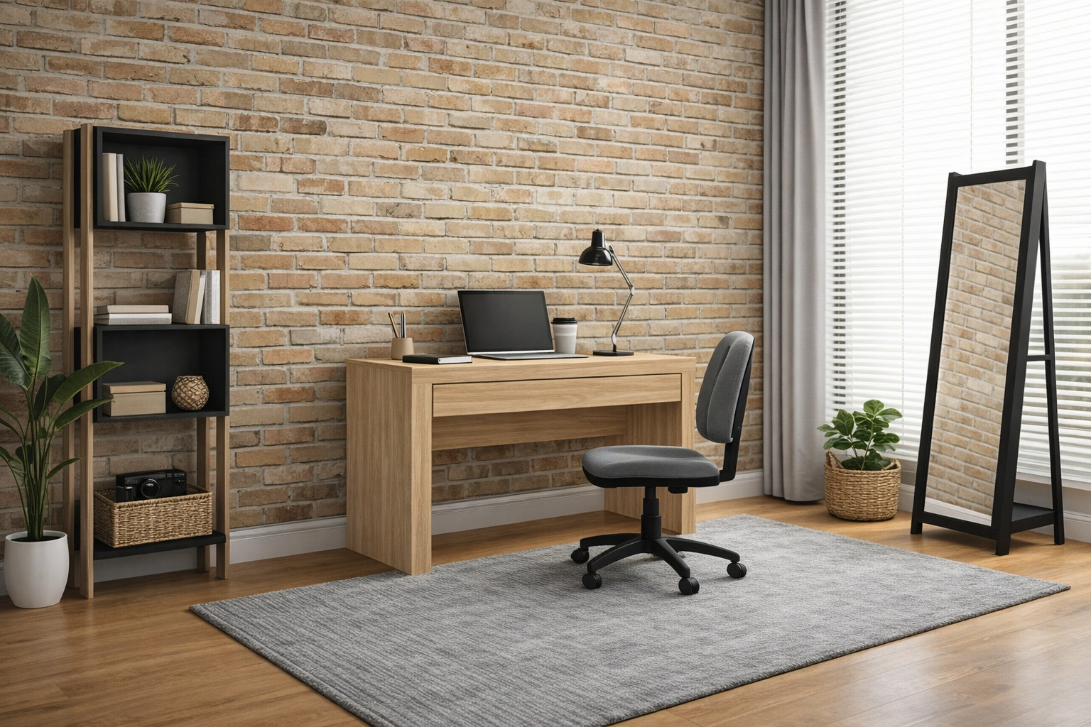 A modern workspace made simple. Streamlined design, natural textures, and functional storage to keep your office feeling organized and inspired.